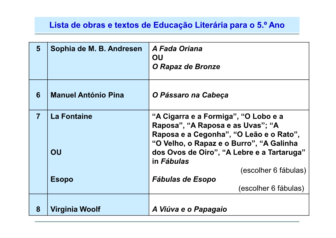 Nesta página podes encontrar os livros da Educação Literária do 1º ao 6º Ano